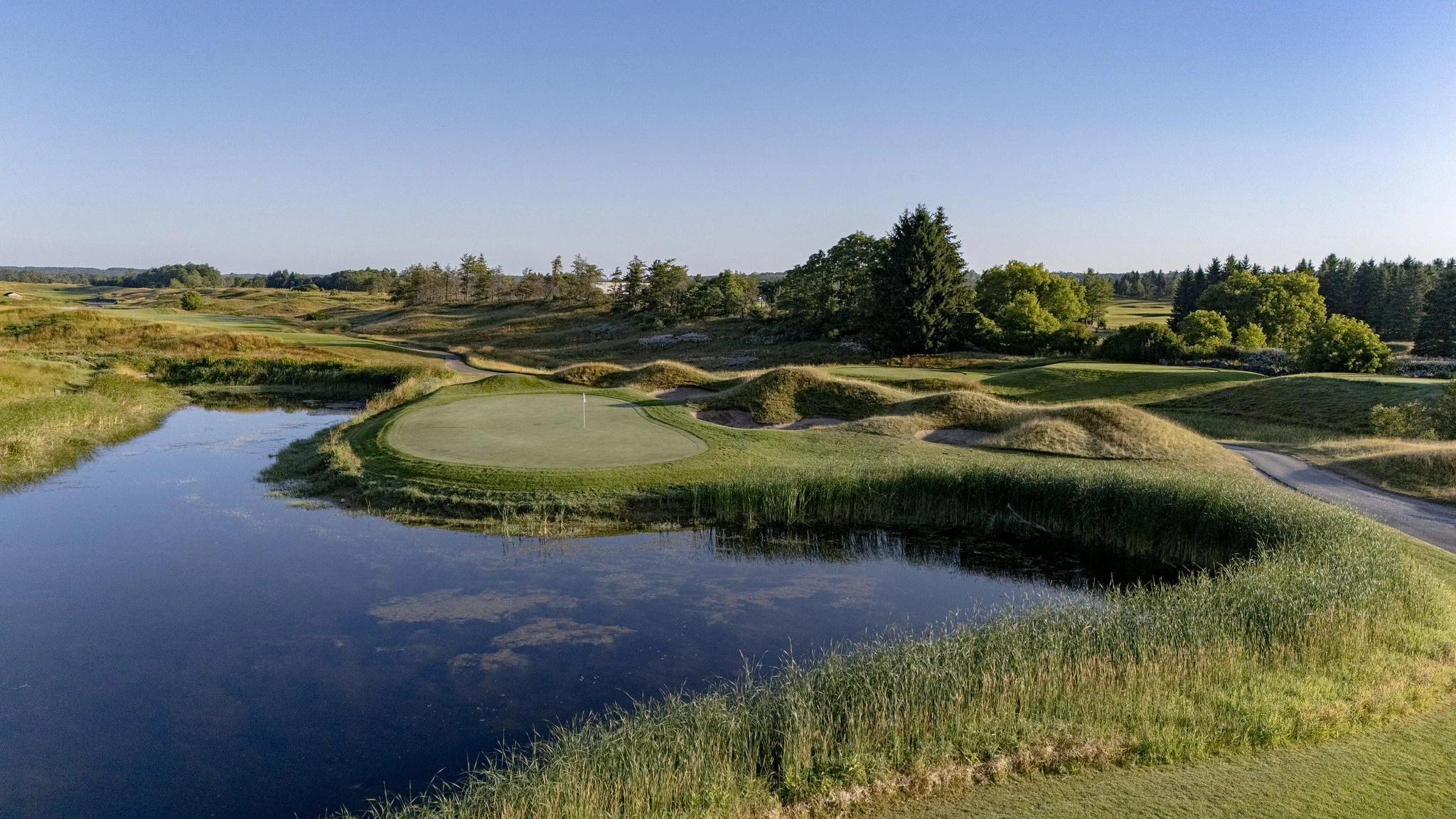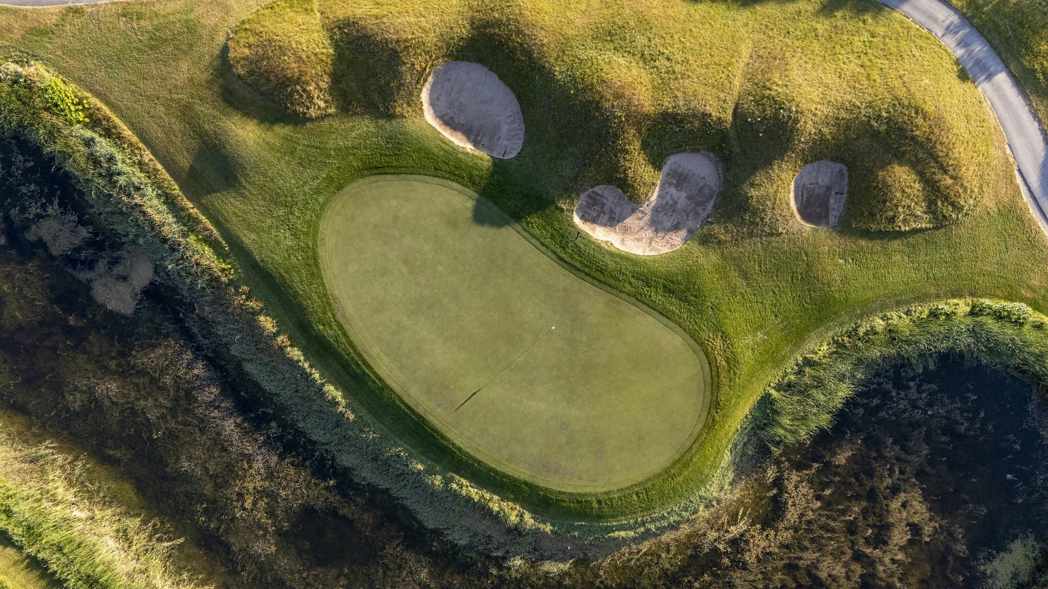 The risk-reward closing hole is built to be a dramatic closer for everything from a match with buddies to the 72nd hole of a national championship, with everything from eagle to double bogey or worse in play.
