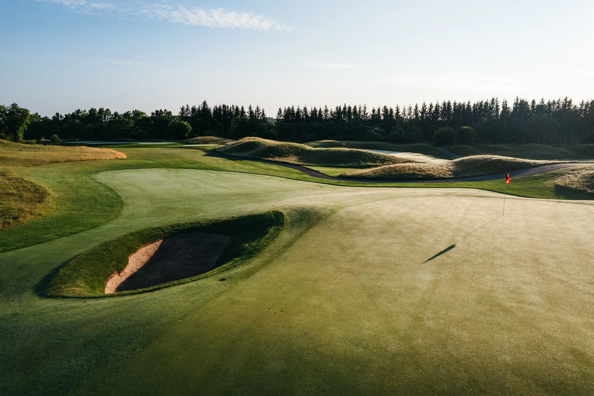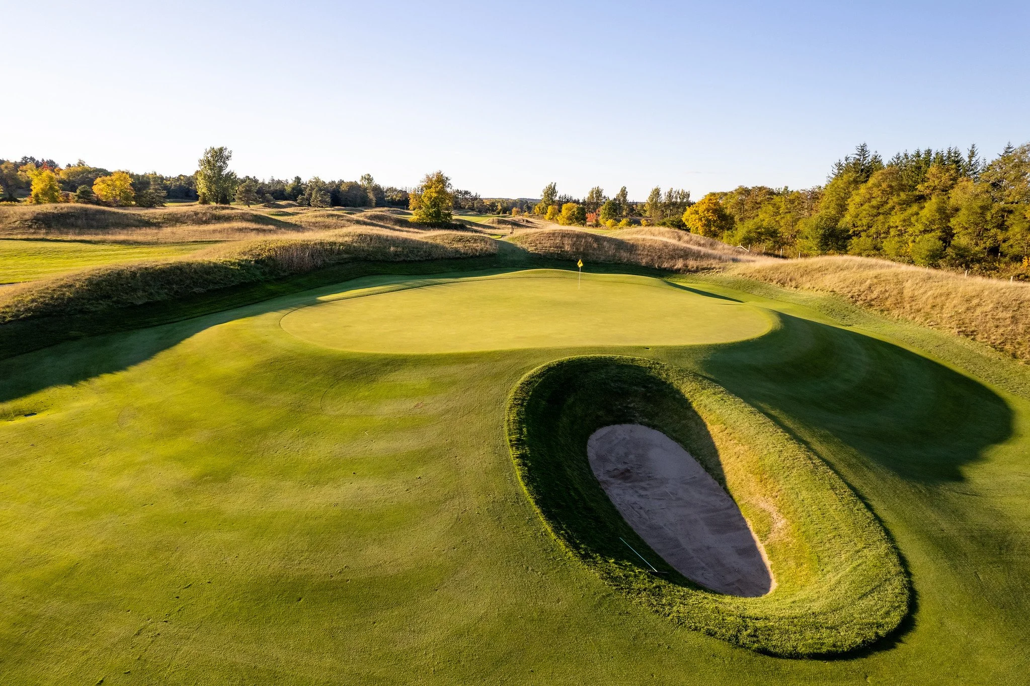 A short risk-reward par-4 framed by five bunkers, the sixth is the first of three memorable 'half par' par-4s (followed by nos. 12 and 15) on the North course, offering players a chance to score with a well-placed lay-up or an aggressive drive to the green. Regardless of what strategy a player ultimately chooses, the sixth tee shot demands precision and execution. A sharp right-to-left fairway camber is accentuated the further one plays up the hole, funnelling balls well below the putting surface. Players who successfully carry the last bunker on the right can take advantage of a ‘feeder slope’ that kicks balls towards the putting surface.