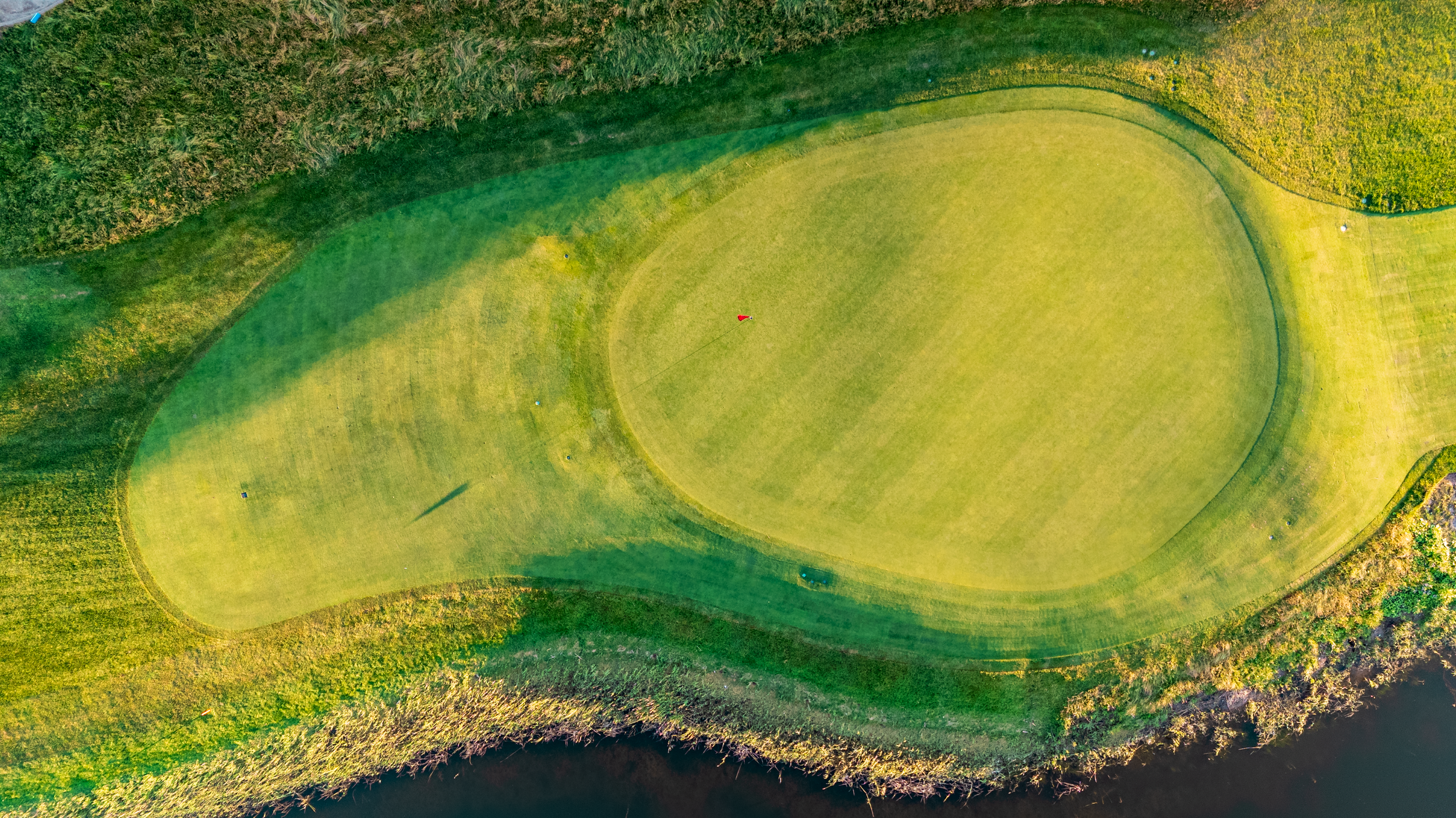 The front and left of the green is protected by a pond and severely-sloped shortgrass runoff area, punishing shots that come up just short or left with a slow roll back to a watery demise. The net result is an opportunity for players to pull off daring risk-reward shot on both the tee shot and approach and finish the round with anything from tragedy to glory.